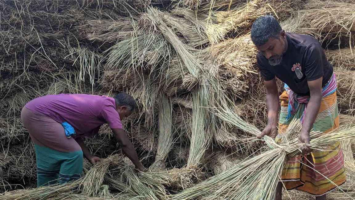 where a পদ্ম / Poddo (lotus) blooms at the centre. Weaving the circular শীতলপাটি / Shitalpati itself